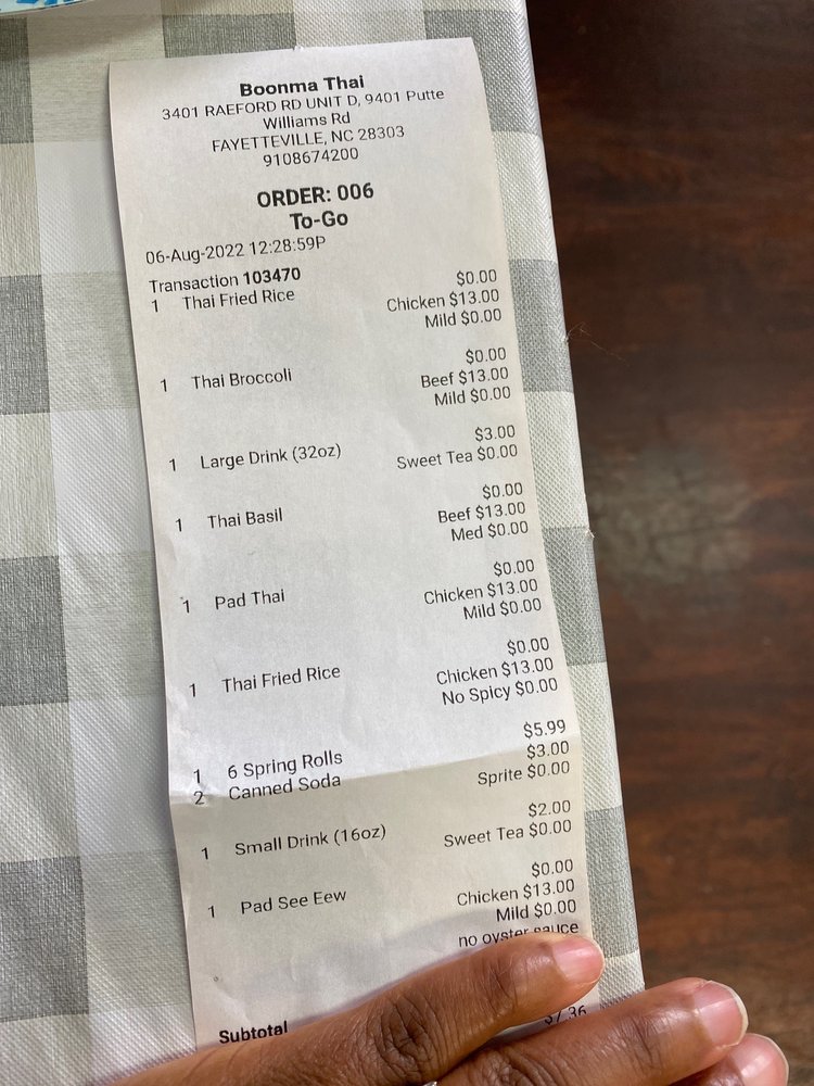 Boonma Thai, located in Fayetteville, NC, offers a delightful blend of Thai and Chinese cuisine. From appetizers like spring rolls, cheese wontons, and curry puffs to lunch specials featuring dishes like garlic chicken and Mongolian beef, the menu is filled with flavorful options. The dinner combos, such as chicken wing dinners and kung pow dishes, provide ample choices for a satisfying meal. Customers rave about the authenticity of the Thai flavors and the freshness of the ingredients. While some reviewers mention minor discrepancies in pricing, the overall consensus is that Boonma Thai delivers delicious food and excellent service. Whether you're a Thai food enthusiast or looking to try something new, Boonma Thai is a must-visit spot for flavorful and satisfying meals.